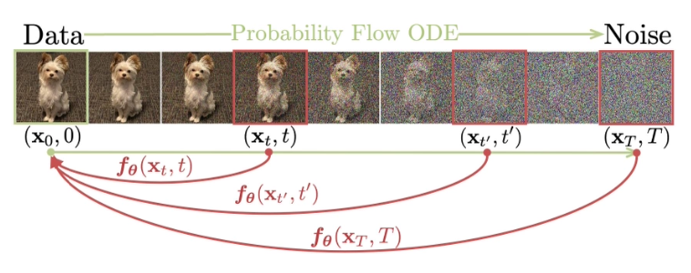 Based on the perspective that views diffusion models as a process of solving probability flow(PF) ODE, the authors defines a function that maps each point of the ODE trajectory to its starting point. Let's take a look at the authors' definition.