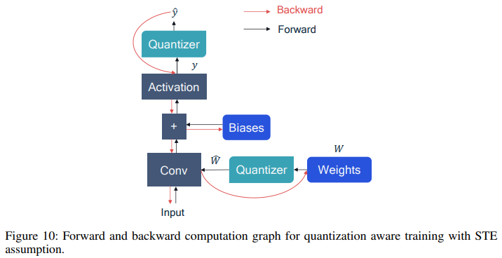 Quantization이 적용된 상태에서 네트워크를 훈련시키는 경우 가장 먼저 미분이 불가능해진다는 문제점에 봉착한다. 일반적으로 QAT에서는 이를 straight-through estimator(STE)라는 방법을 통해 해결한다. 이는 rounding operator의 미분을