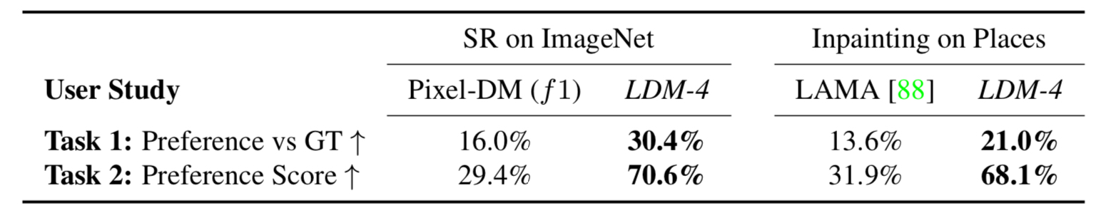 LDMs could effectively handle the super-resolution task by generating a high resolution image, conditioned on the low resolution version of it. The authors trained the model to restore the original image based on the image degraded via bicubic interpolation.