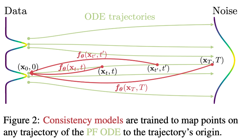 The authors emphasize that consistency models are deeply inspired from diffusion models, which is the most successful branch of generative models, achieving state-of-the-art performance across a wide range of fields. For those who are not familiar with diffusion models, I recommend you to read one of many blog posts describing diffusion models or refer to papers such as DDPM.
