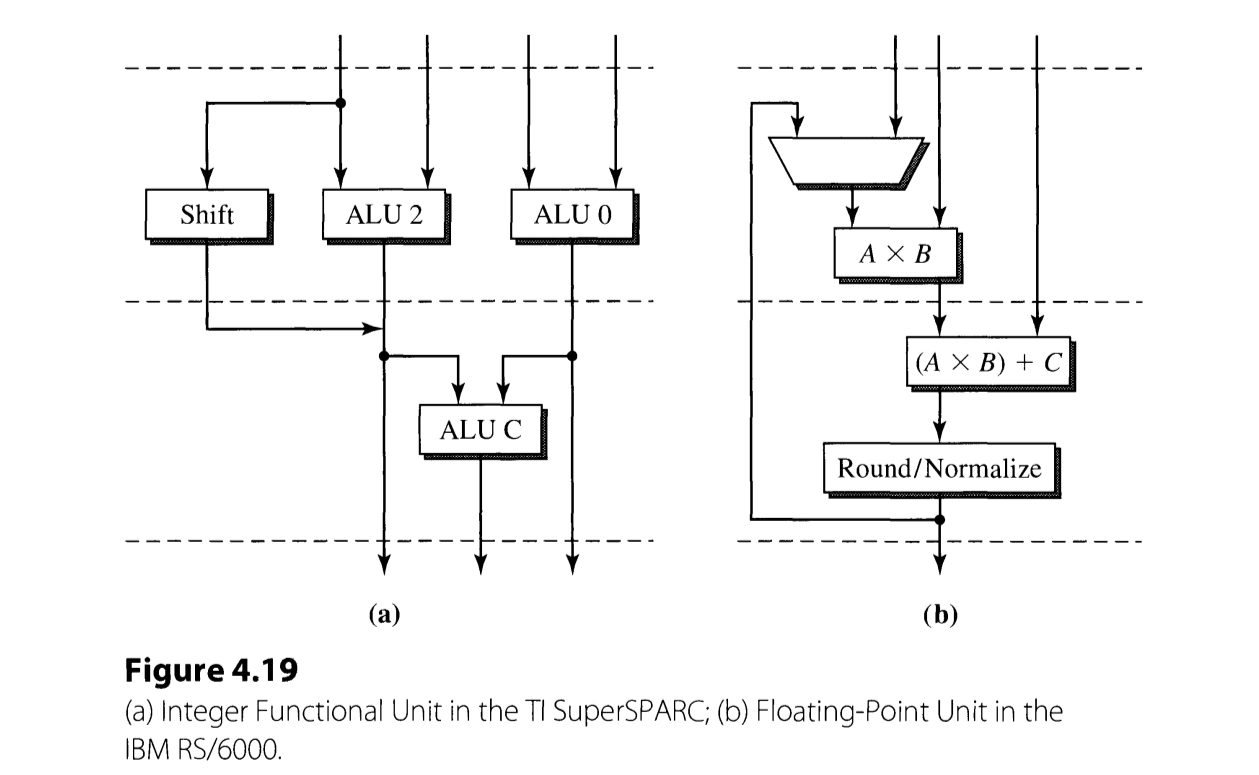 The figure above depicts the structure of integer and floating-point functional unit of RS/6000. Following are the interesting facts in execution stage of the pipeline.